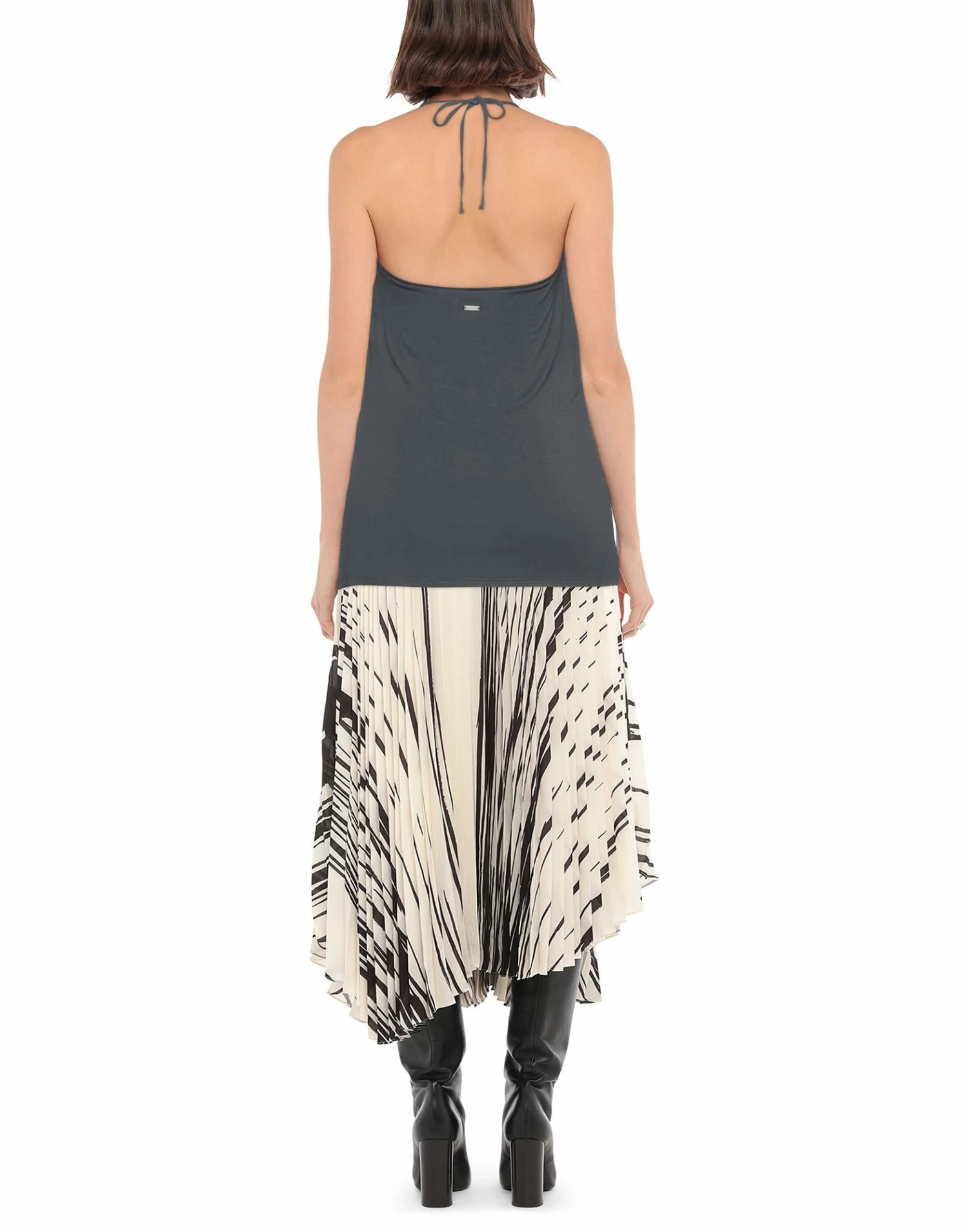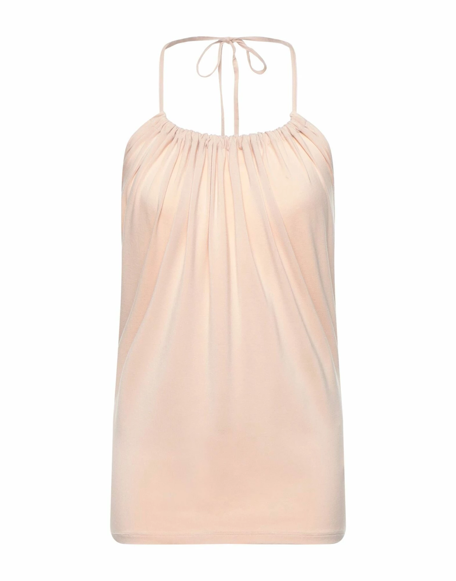 jersey, no appliqués, solid color, round collar, sleeveless, self-tie closure, no pockets, stretch