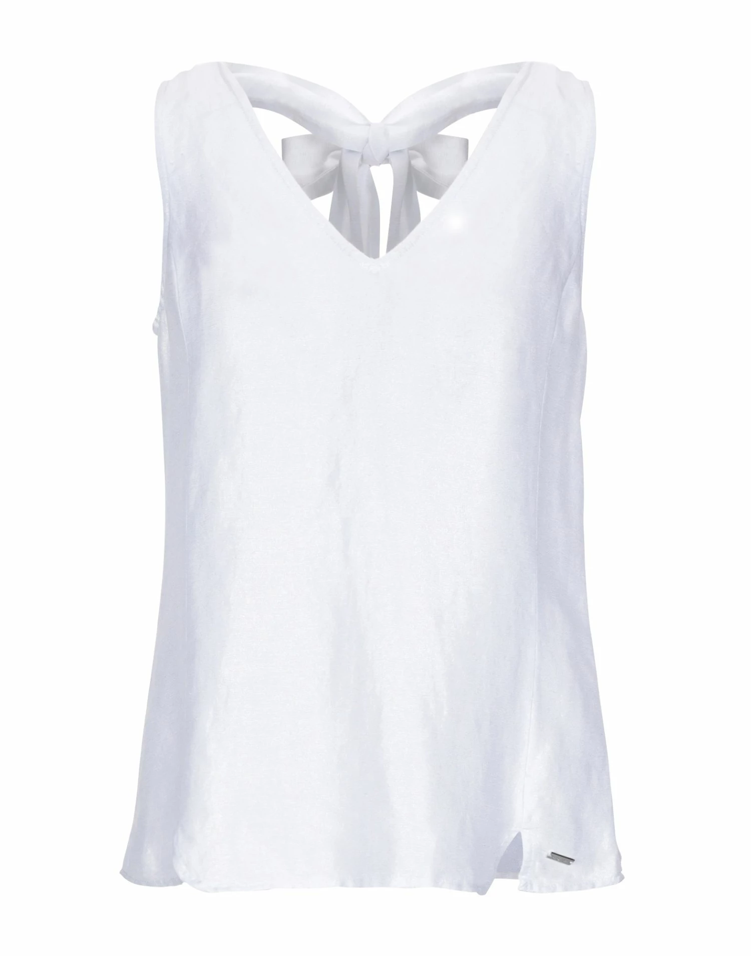 plain weave, laminated effect, logo, solid color, deep neckline, sleeveless, rear closure