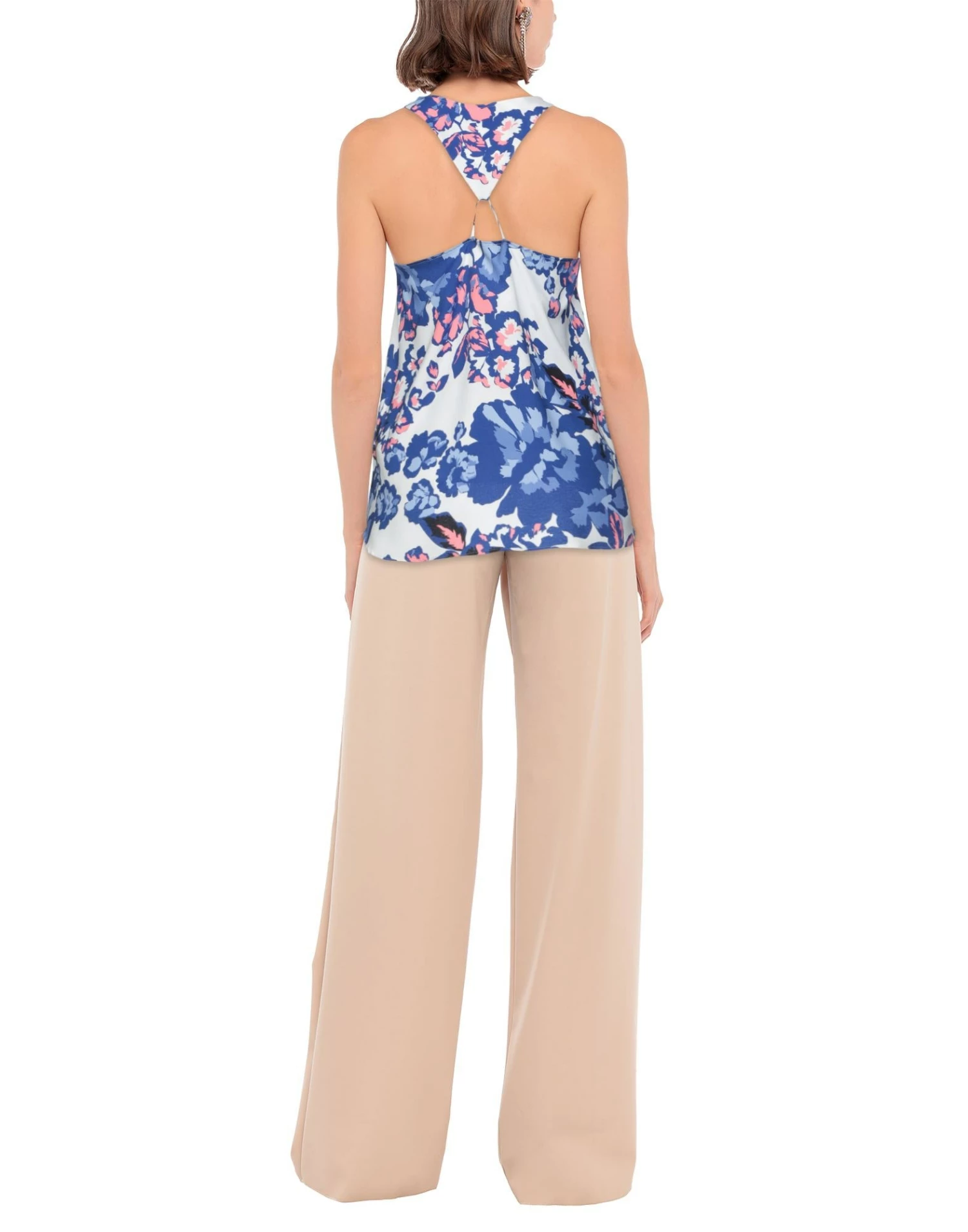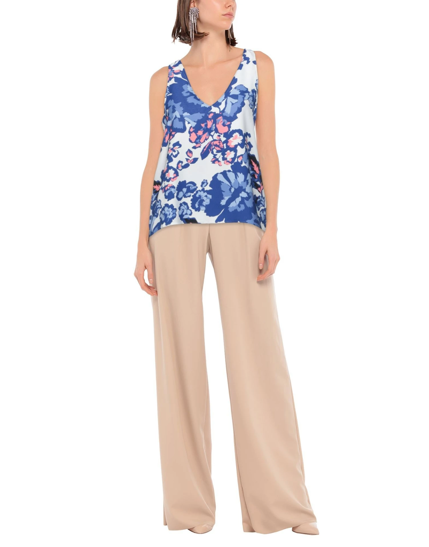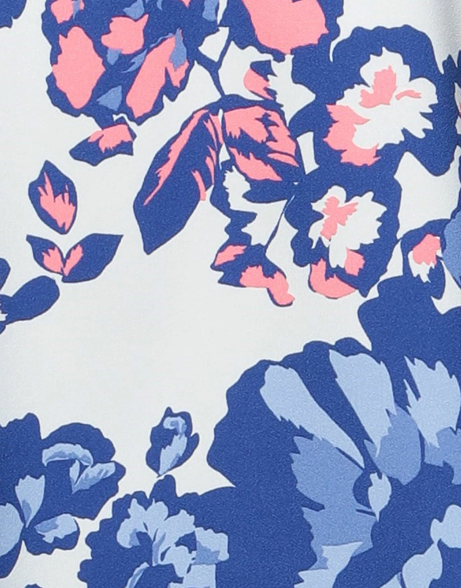 crepe, brand logo, floral design, deep neckline, sleeveless, no pockets