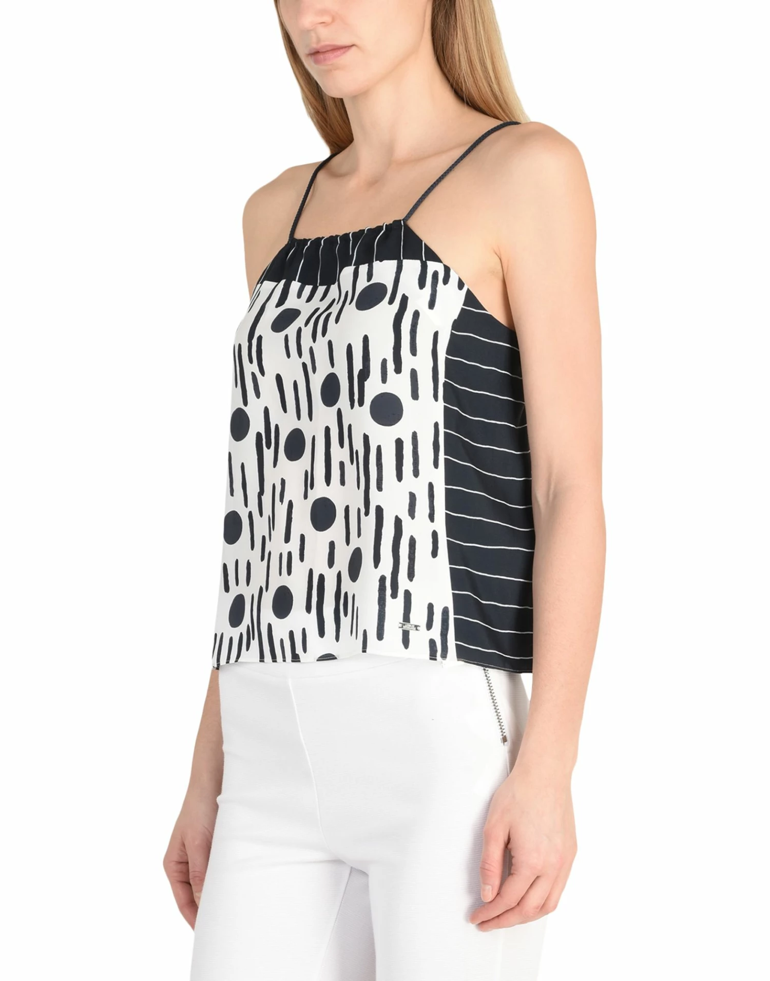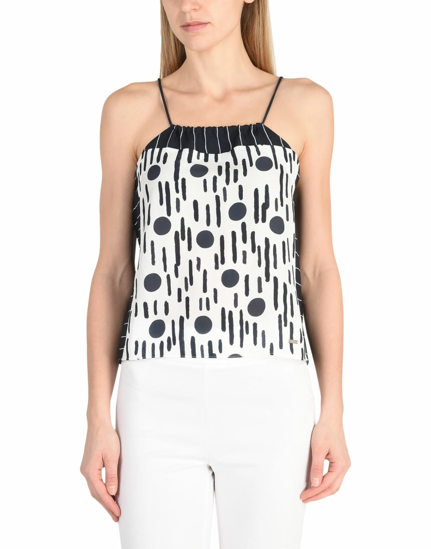 crepe, no appliqués, polka dots, square neckline, sleeveless, no pockets