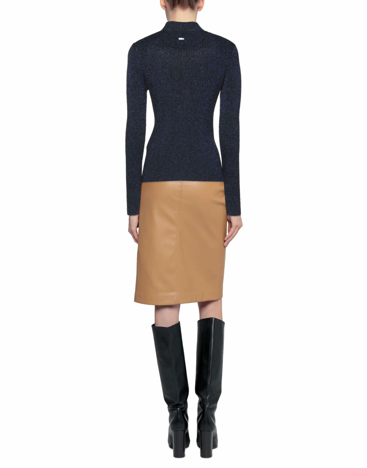 knitted, lamé, no appliqués, turtleneck, two-tone, long sleeves, no pockets, medium-weight knit