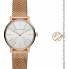 rhinestones, logo, deployant clasp, case material: stainless steel, strap material: stainless steel, movement: quartz