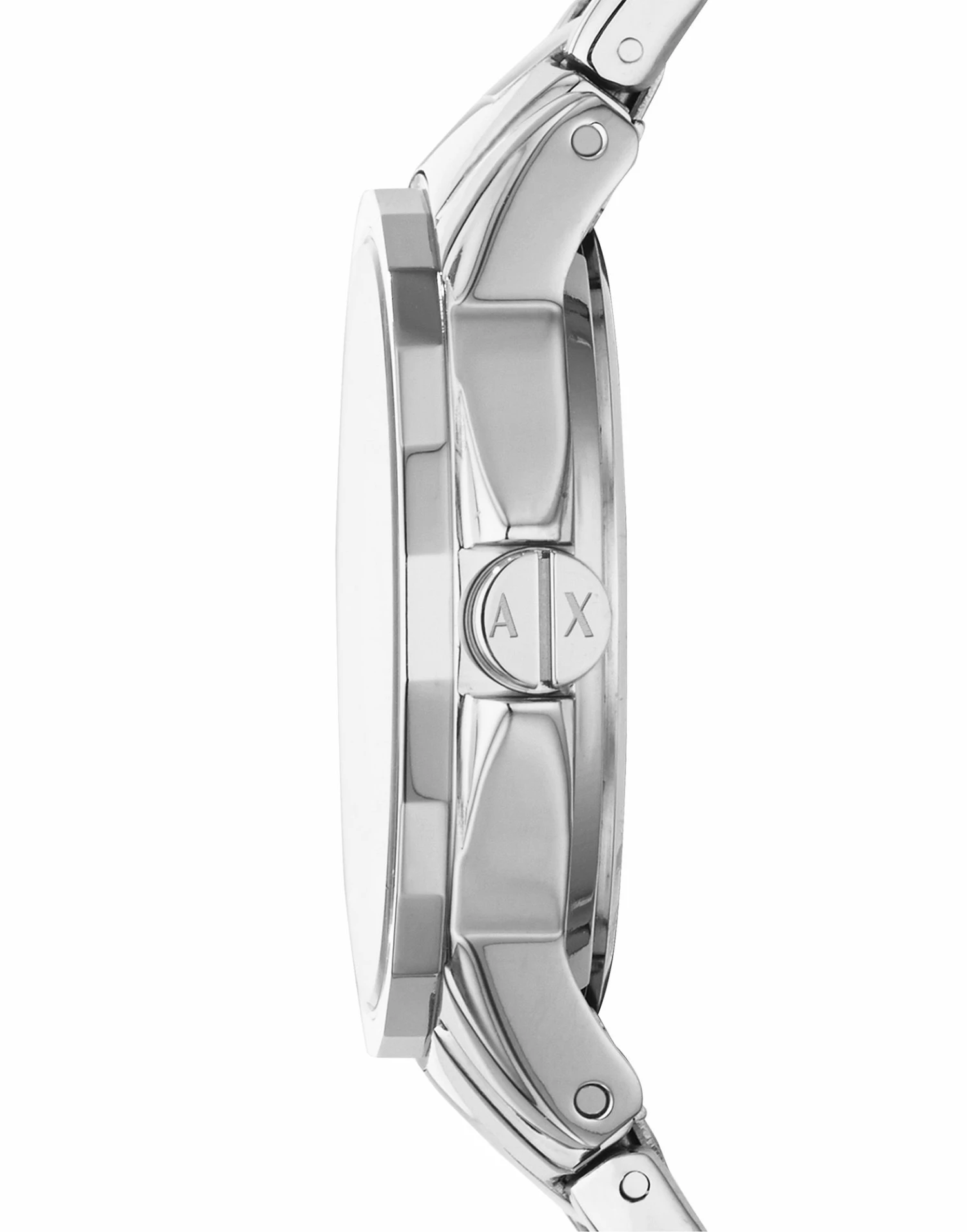 rhinestones, logo, deployant clasp, case material: stainless steel, strap material: stainless steel, movement: quartz
